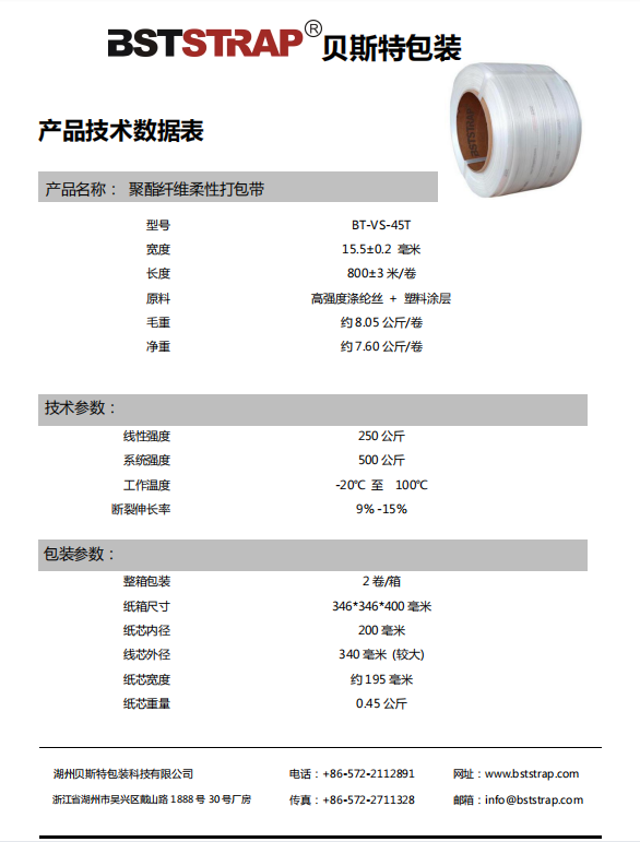• 15.5mm 聚酯纤维打包带 BT-VS-45T